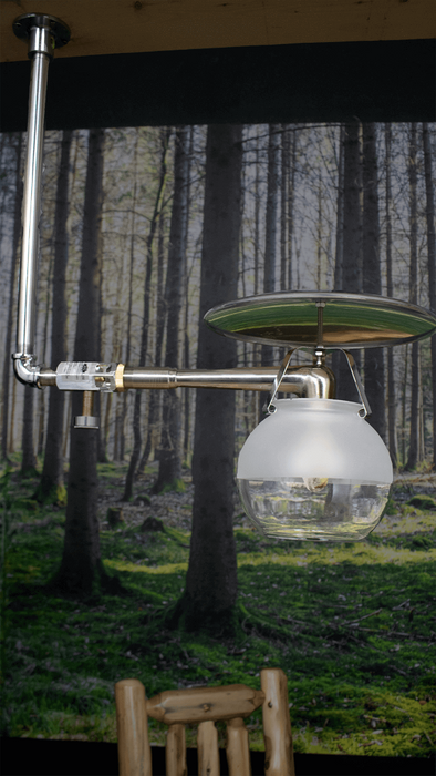 Made in the USA, these fully OTL certified gas lamps have adjustable brightness and boast a 100 watt equivalent for a single lamp - and best of all, no power required! Superior quality vs other propane lamp designs, the Model 450 is an all stainless steel construction with a polished aluminum reflective dish which reflects the light downward while protecting the ceiling above. Adjust the brightness on the Model 450 with a simple turn of a knob which increases or decreases the propane flow - and best of all - uses standard tie-on mantles! No more expensive preformed mantles to worry about damaging!