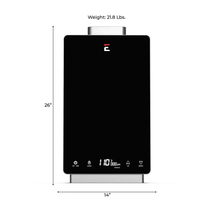 The Eccotemp i12-LP has a new revolutionary design, making it unlike any other tankless water heater on the market today. This model features a sleek black gorilla glass casing, fully automatic temperature controls for prescision, touch screen and LCD temperature display which shows output temperature as well as GPM flow. Rated at an impressive 3 GPM, the Eccotemp i12-LP Tankless Water Heater is a liquid propane fired, indoor model designed for small to medium hot water production where you need more than one hot water application at the same time. The Eccotemp i12-LP is perfect for vacation cabins, cottages and smaller homes.