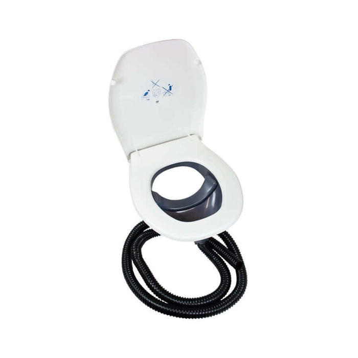 The Privy 501 includes: Urine separating kit Toilet seat with lid Hose 2.5 m for urine waste.